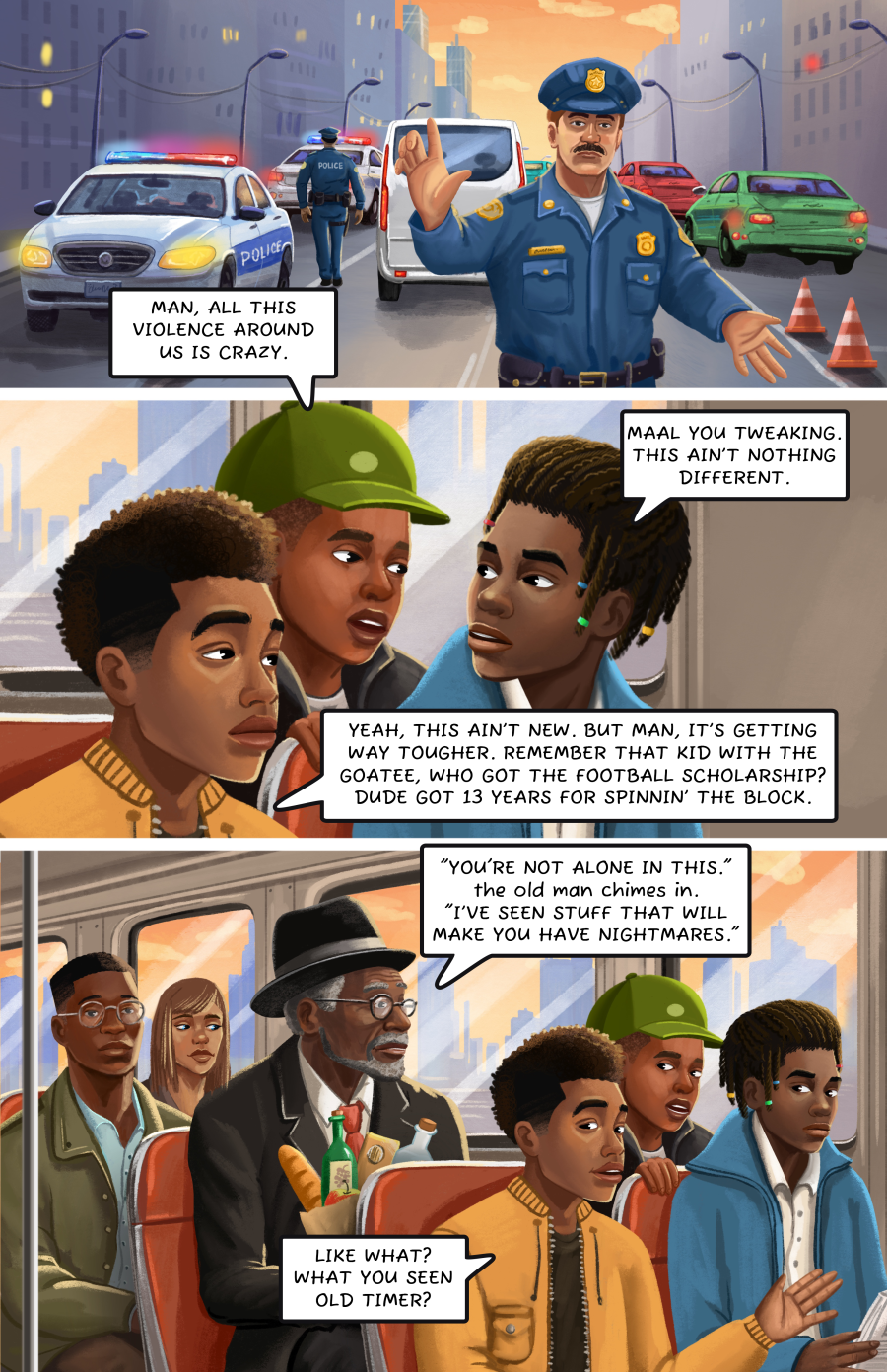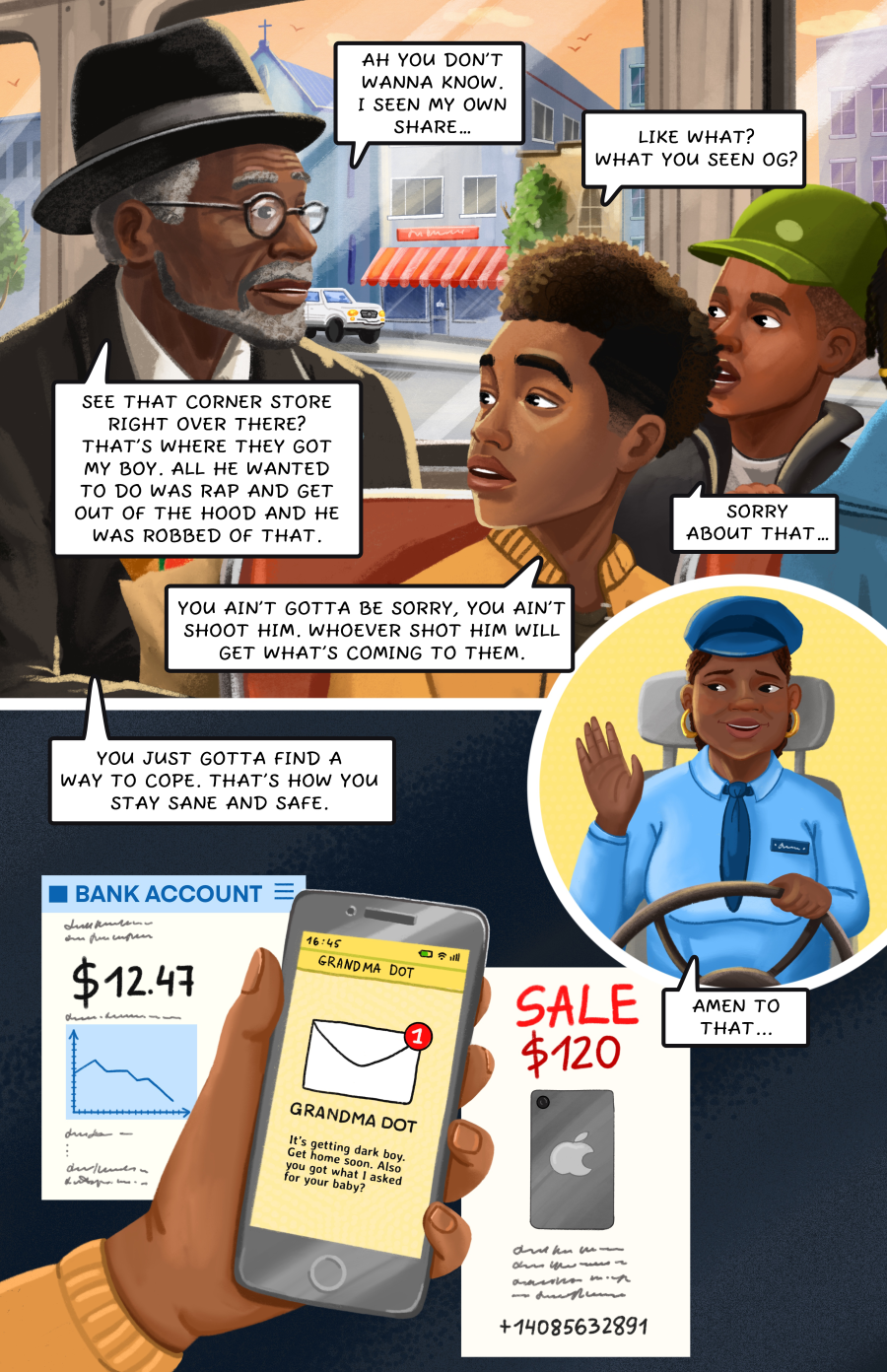 BUS RIDE The city is buzzing. Sirens howl. Somewhere nearby, someone is arguing with a cop. The bus shakes as it crawls over potholes. Just another day. Nothing special. And yet, it’s days like these that stories are born. This one is about how a single bus ride can turn into a full-scale life lesson. There are no caped superheroes here. Just ordinary guys, looking for meaning between stops and hoping not to be late — not only for the bus, but for life itself. Each of them comes with a past. With scars. With memes saved on their phone. Someone complains about the madness all around. Someone pretends not to notice anything. And someone — like an old man in a worn-out jacket — can say more in two sentences than an entire podcast on Spotify. “Breathe, kid. The city isn’t going anywhere. Close your eyes — but keep your ears sharp.” That’s how we live: between stops, between nerves, and hope. Bus Ride is not just pictures and dialogue. It’s the pulse of the street. Every panel feels like a movie still, and every character is someone you’ve already met on your daily route. Behind the cool lines and familiar memes there’s something real: fear, humor, strength, pain — and the small tricks we use to keep from losing our minds while waiting for the light to turn green. Sometimes it’s rough. Sometimes it’s funny. And sometimes it hits hard — like when an old man talks about a dream that vanished at an intersection, along with someone’s fate. But on every page there’s a chance to realize that we’re all riding the same bus. Some stay silent. Some joke around. Some just stare out the window, thinking: “The main thing is not to miss your stop.” So buckle up (if you can find a seatbelt 😄), sit back, and let’s go. This isn’t just a comic. It’s a route through life — with stops called Hope, Sarcasm, and An Honest Conversation. Bus Ride is a project about the city, its people, and how to stay human — even when the route is unpredictable.