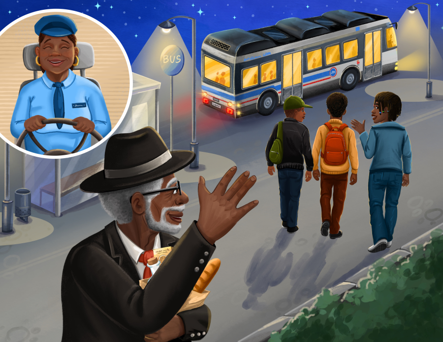 Ілюстрації до дитячого коміксу "Поїздка на автобусі"
