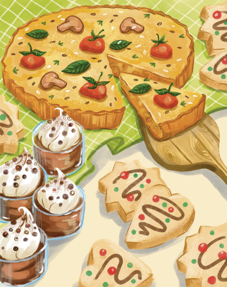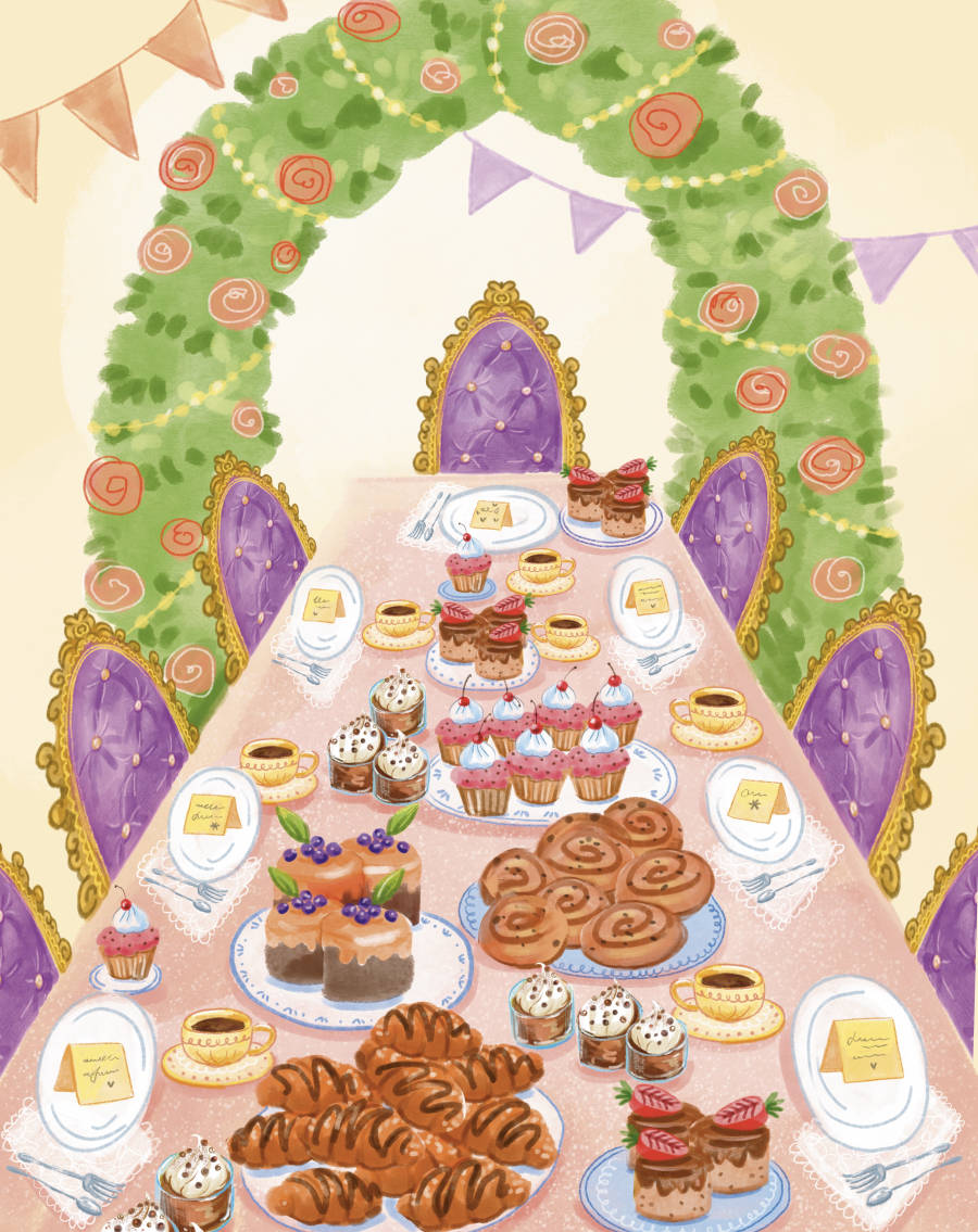 Разом із мамою вони сідають за стіл і починають обговорювати меню солодощів, адже така велика компанія потребує справжнього десертного дива. Печиво з цукровою пудрою, пухкі мафіни, фруктові тарталетки, шоколадні рулети, ніжні безе — список зростає, і мама вже сміється, що знадобиться ціла гора інгредієнтів та трішечки чарів.