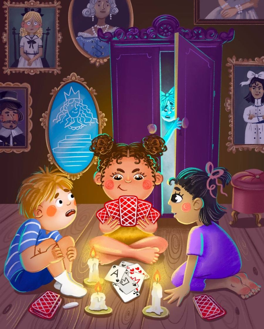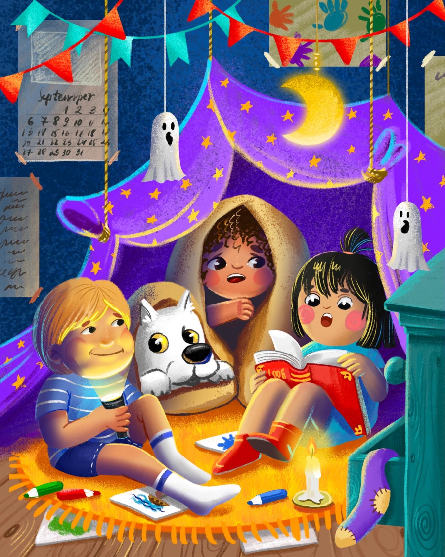 This series of illustrations tells the story of three friends celebrating Halloween together.