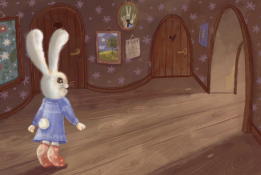 Головний герой — маленький кролик, який прокидається посеред ночі від дивних шурхотів. Світ навколо виглядає незвично: коридори затоплені приглушеним місячним світлом, тіні рухаються від кожного поруху лапки, і навіть знайомі кімнати здаються сповненими таємниць.