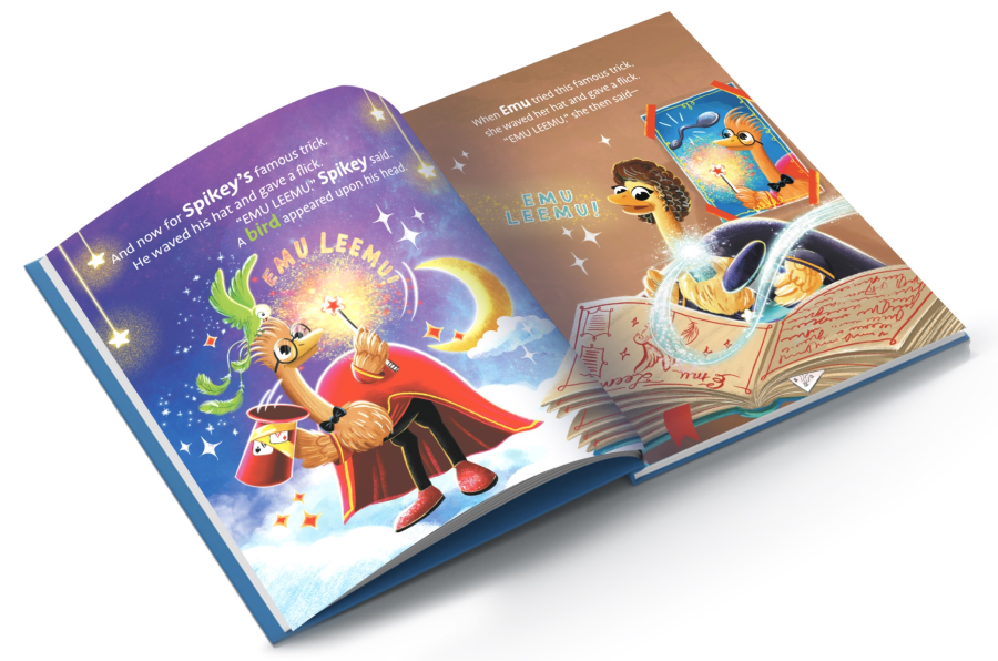 In old and charming Emu Town..an emu aspires to be the like the great magician, Spikey Spike. But her magic goes all “wrong” and nothing like Spikey’s! Will the emu find her magic and dare to be different? With colorful illustrations and playful rhymes, Magician Emu is an exciting tale of self-discovery and a celebration of being unique. It is the third in the picture book series, Emu Town Stories.