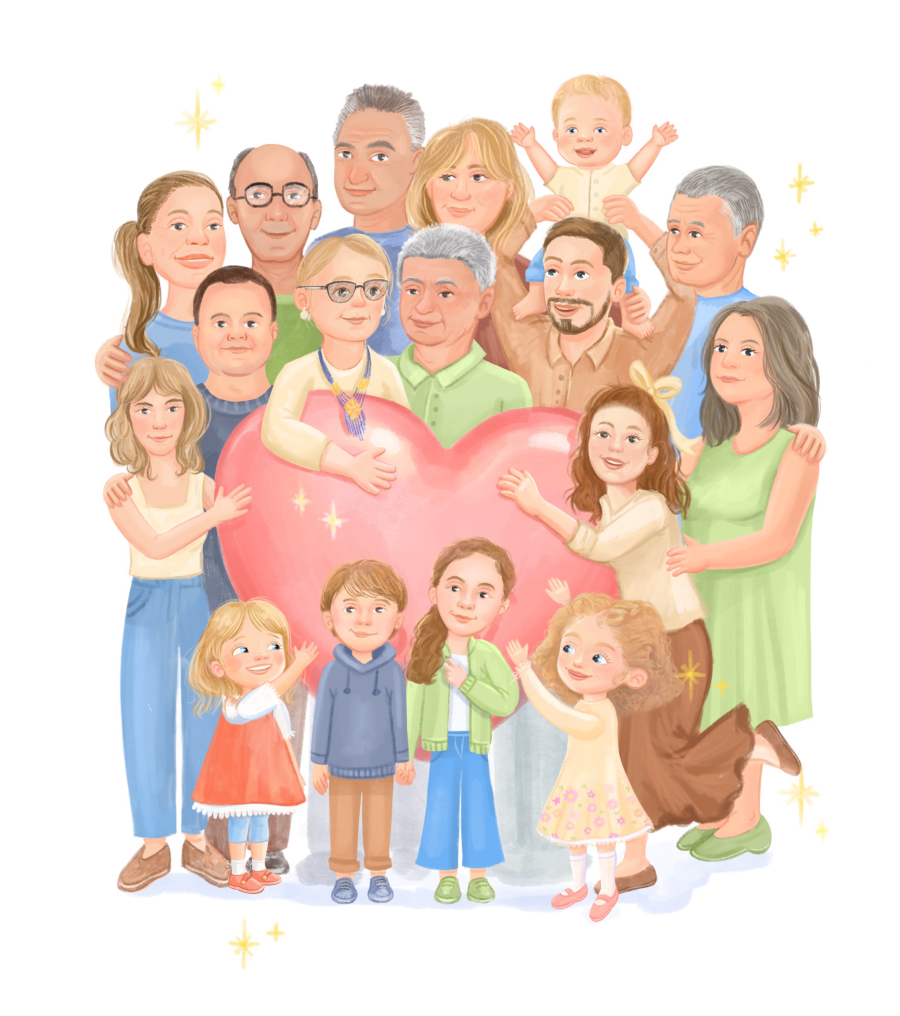 • Custom illustrations for private clients (gifts, portraits, family stories)